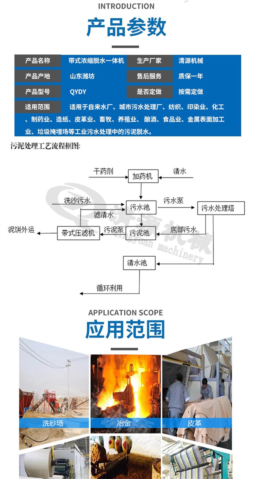 三、應用范圍:適用于自來水廠、城市污水處理廠、紡織、印染業、化工、制藥業、造紙、皮革業、畜牧、養殖業、 釀酒、食品業、金屬表面加工業、垃圾掩埋場等工業污水處理中的污泥脫水。