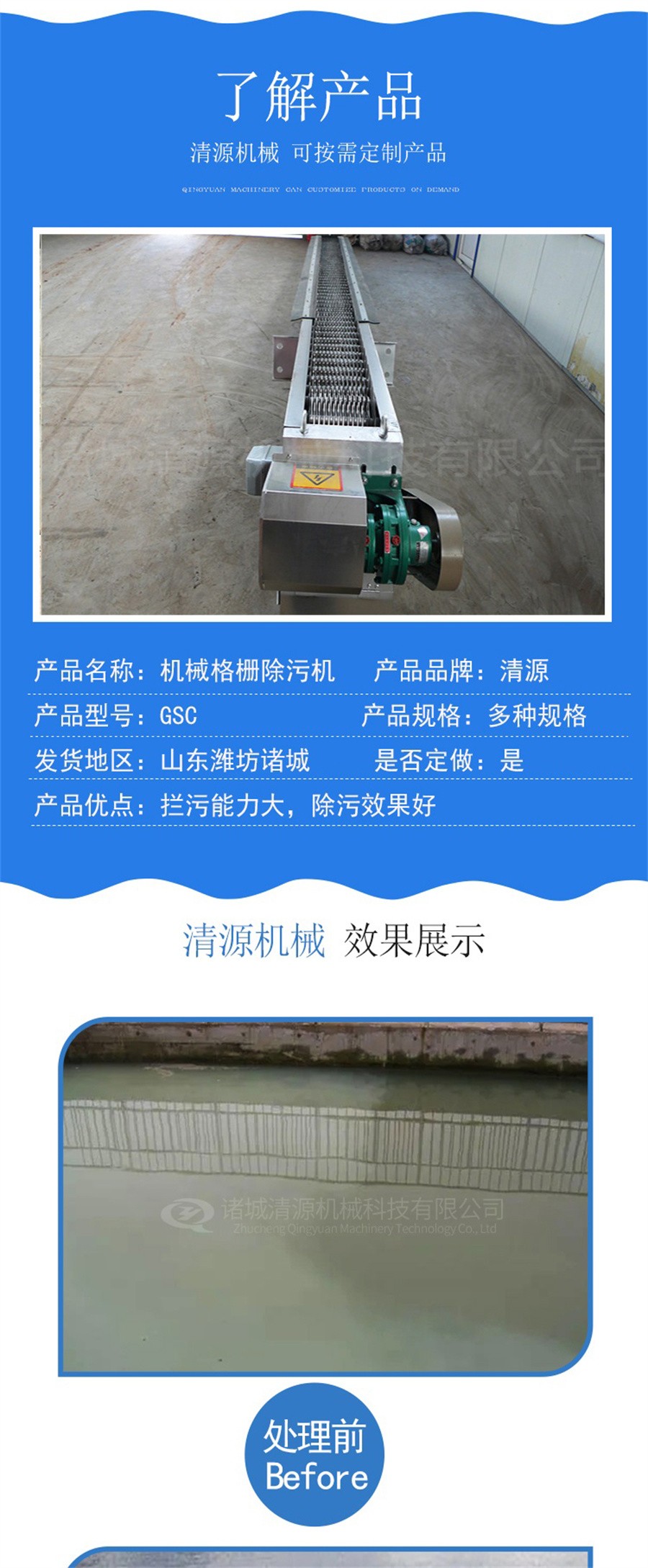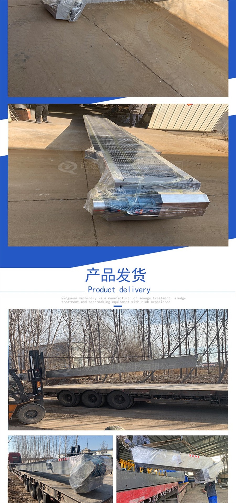 三、應用范圍:格柵除污機廣泛應用于給水、排水的二道格柵及無粗大漂浮物的取水構筑物進水口; 也可用在造紙、紡織、皮革、釀酒、榨糖、水產等工業廢水及市政污水。